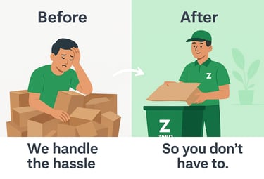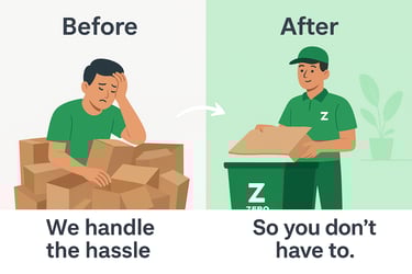 ✅ Premium Cardboard Handling: we flatten and recycle your boxes — no cutting, folding, or stress.