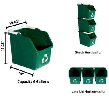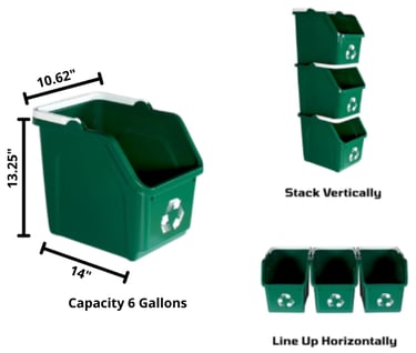 ✅ Receive 4 labeled 6-gallon bins for glass, plastic, paper & cardboard, and cans.